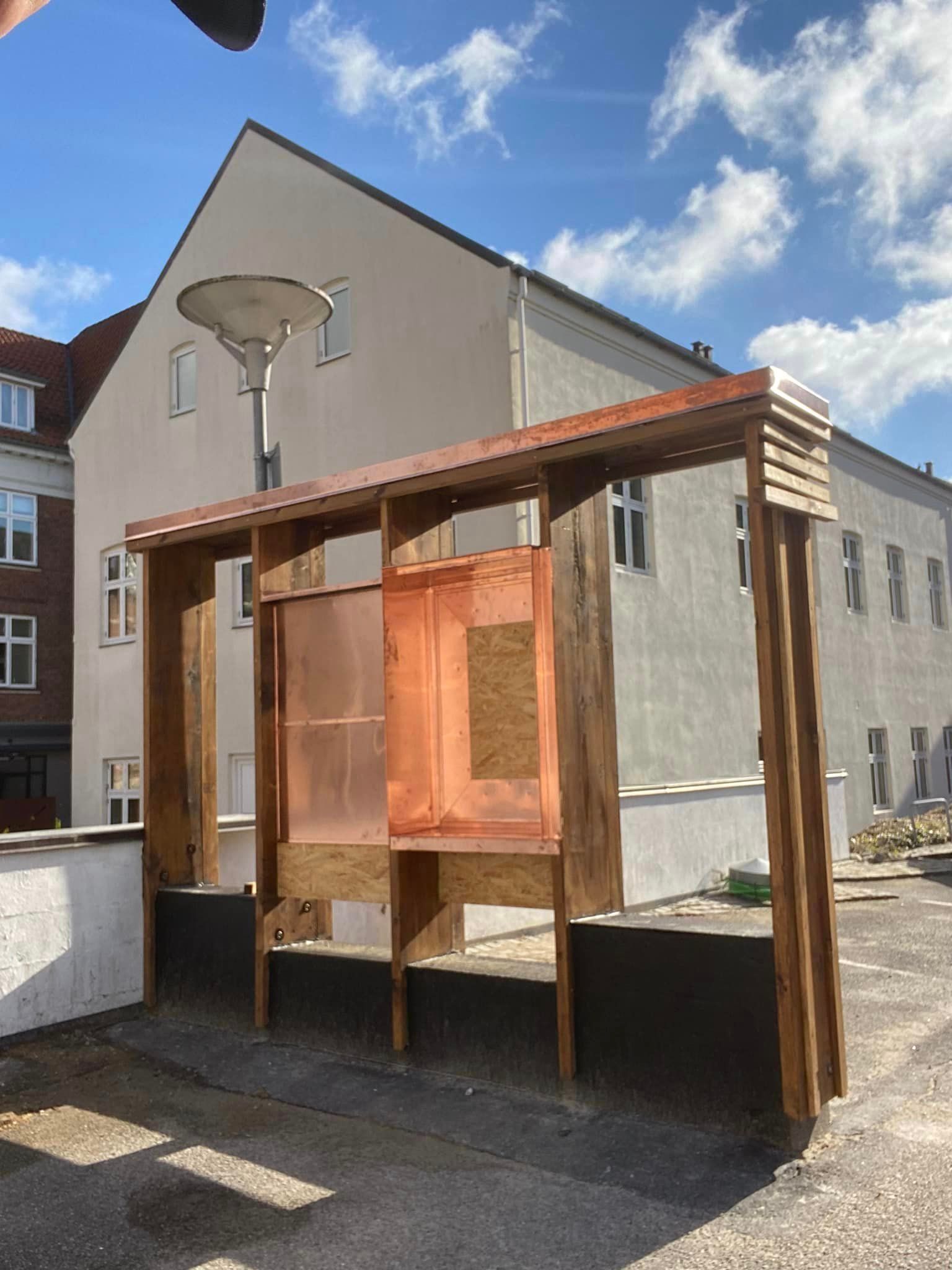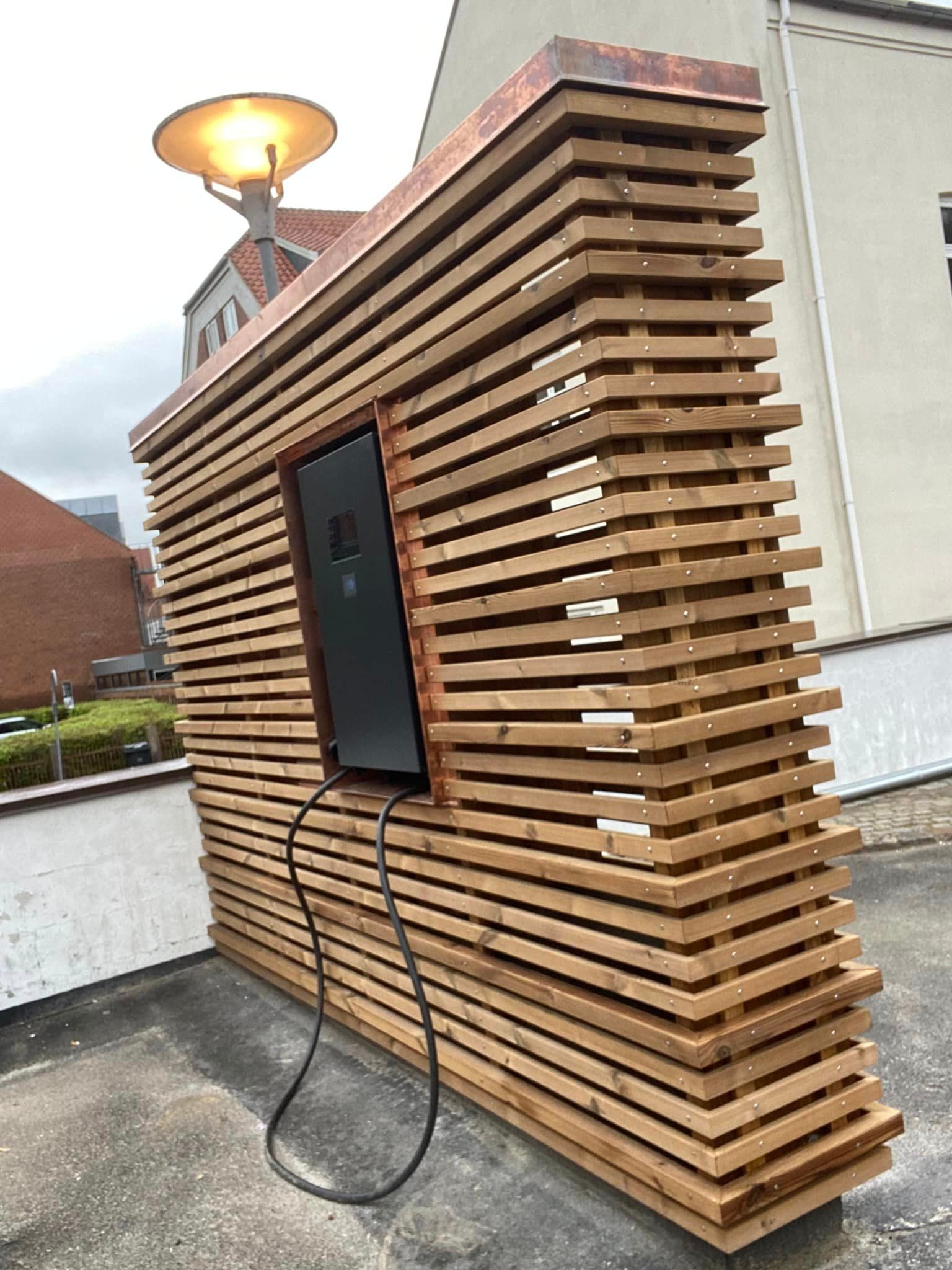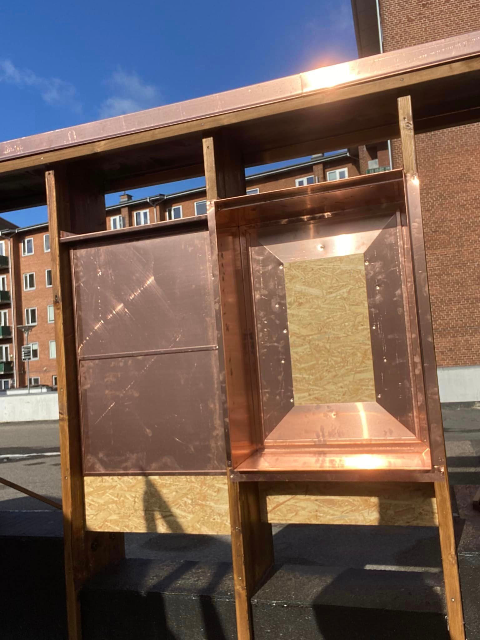 To styks kobber beklædte ladestandere med træ på ydersiden